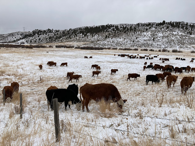 I had a blog all started about the mild November we were having in the mountains. How I had walked a tributary of Meadow Creek looking for brook trout spawners and, not finding any, had decided it had been too warm and sunny yet. And how, at the spring, the water bubbled up sending concentric circles out in a delicately repeated pattern. Then it all ended abruptly with snow and high winds. We've been in the hills every day since, gathering stragglers, breaking water, convincing cattle that there was indeed grass under the snow and to go eat it already!